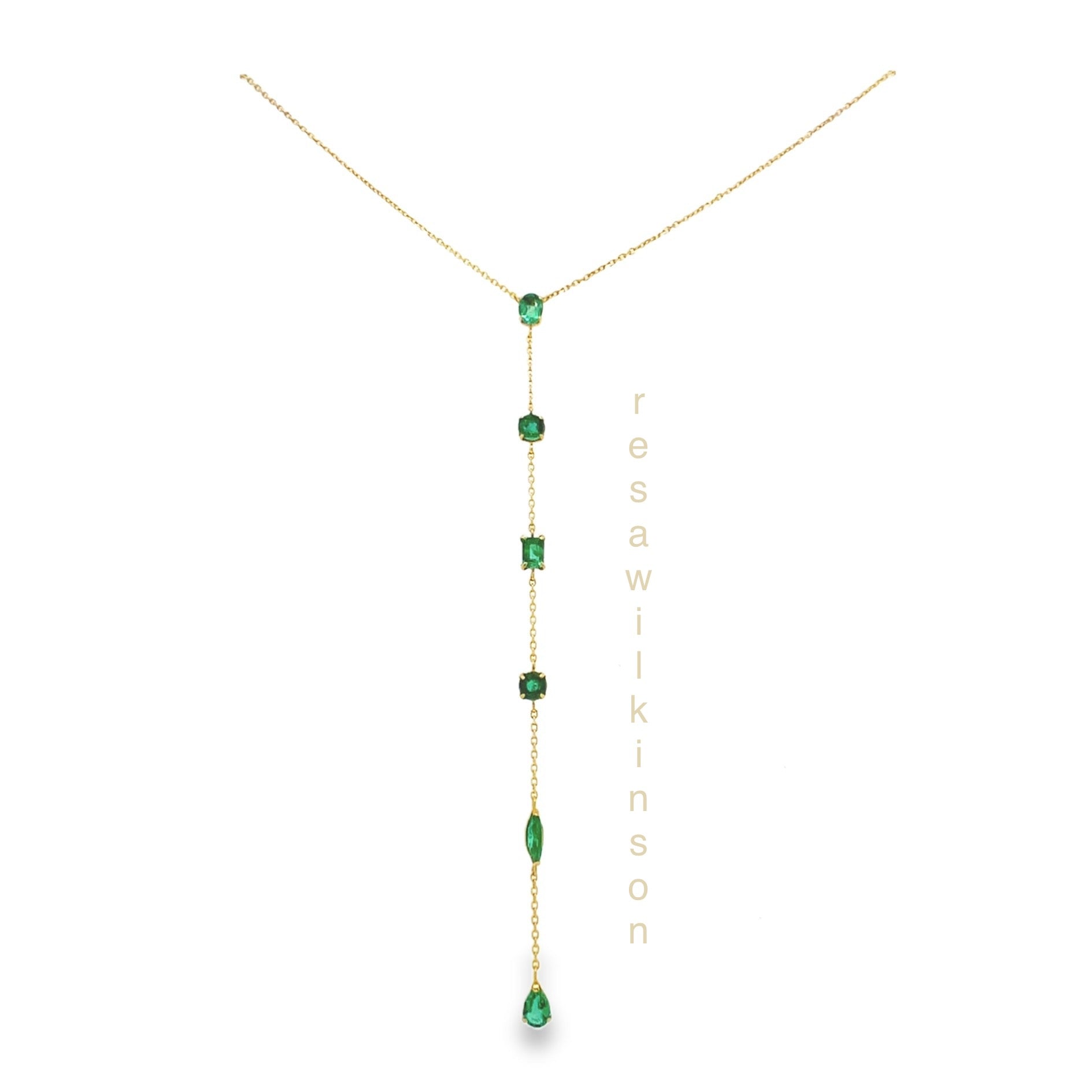 Emerald Lariat Gold Necklace Mixed Cut Stones